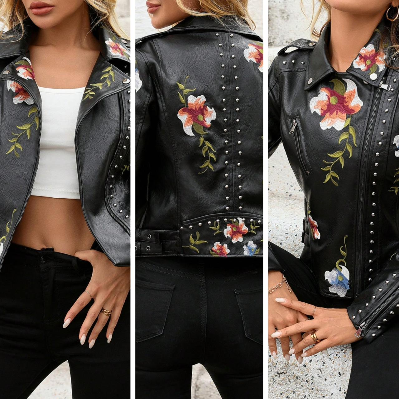 La imagen mostrada es de referencia. El estampado de la chaqueta de cuero puede presentar ligeras variaciones en el diseño al momento de la entrega.