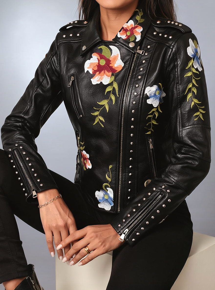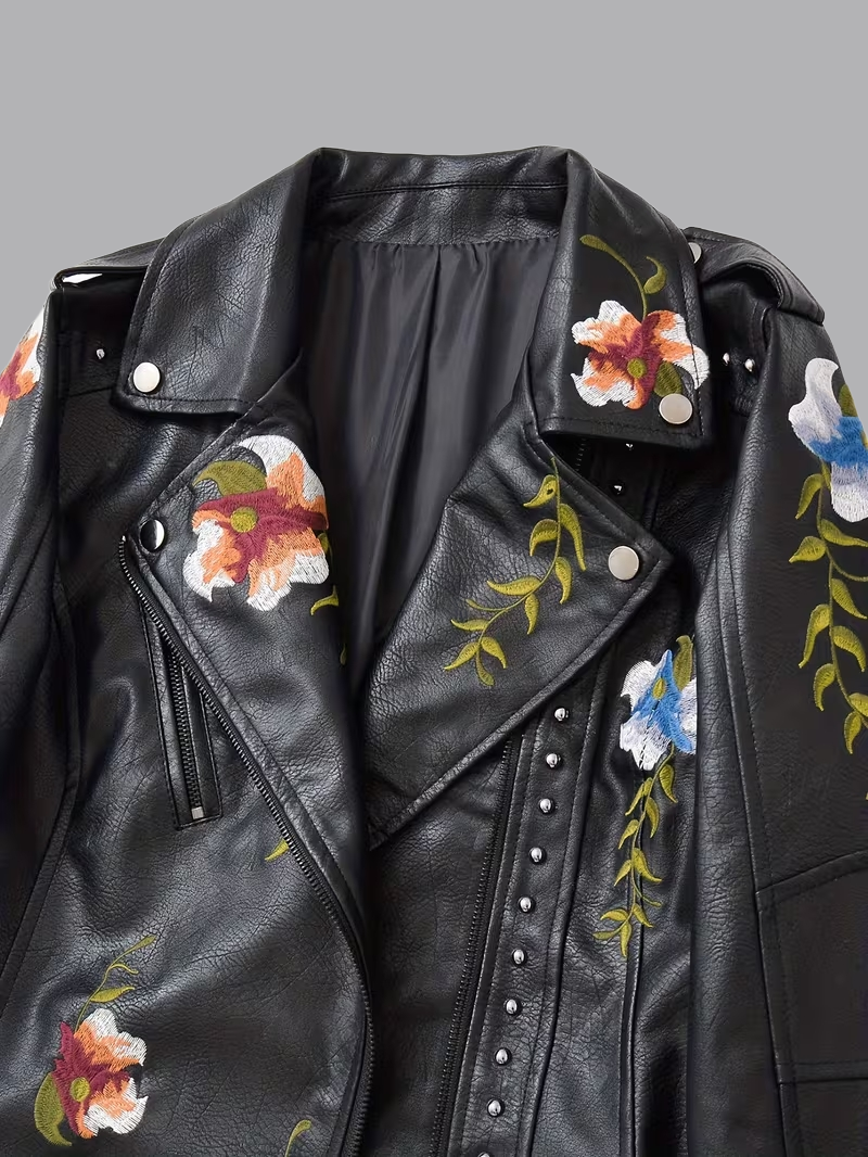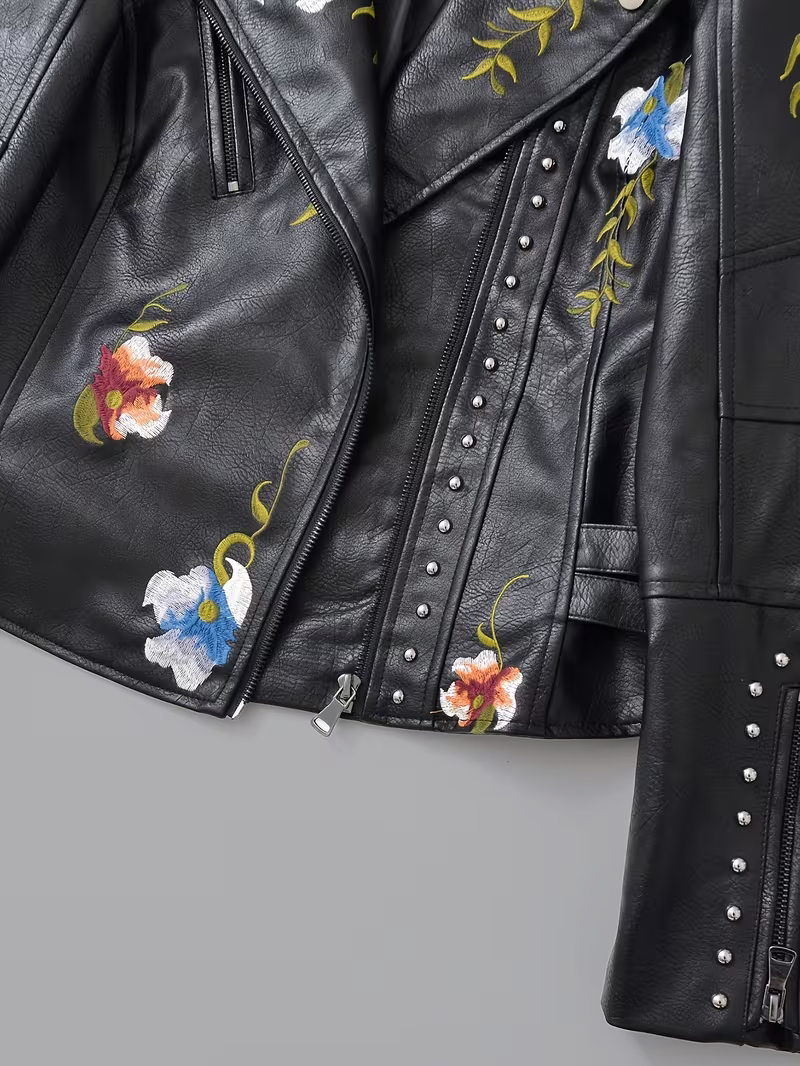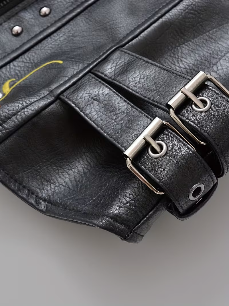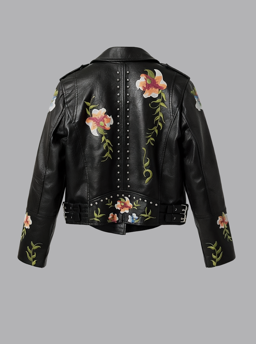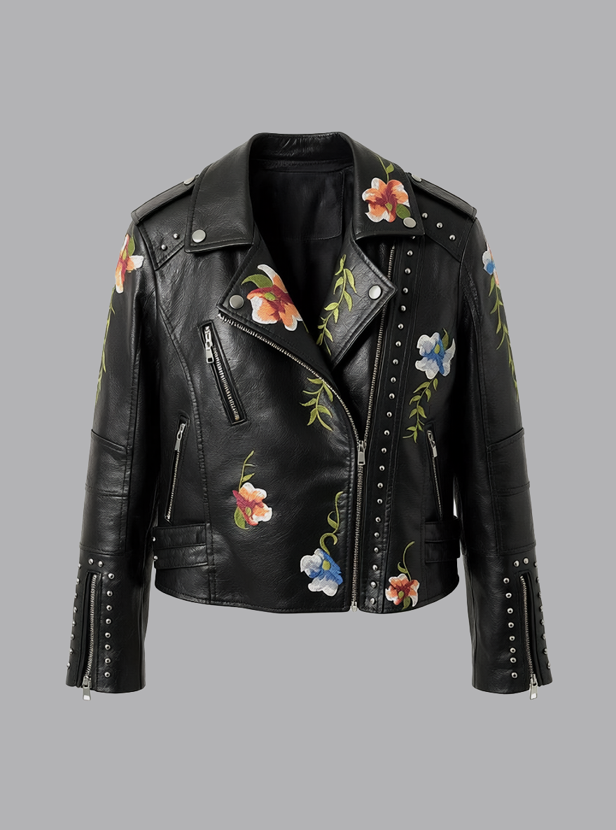 La imagen mostrada es de referencia. El estampado de la chaqueta de cuero puede presentar ligeras variaciones en el diseño al momento de la entrega.